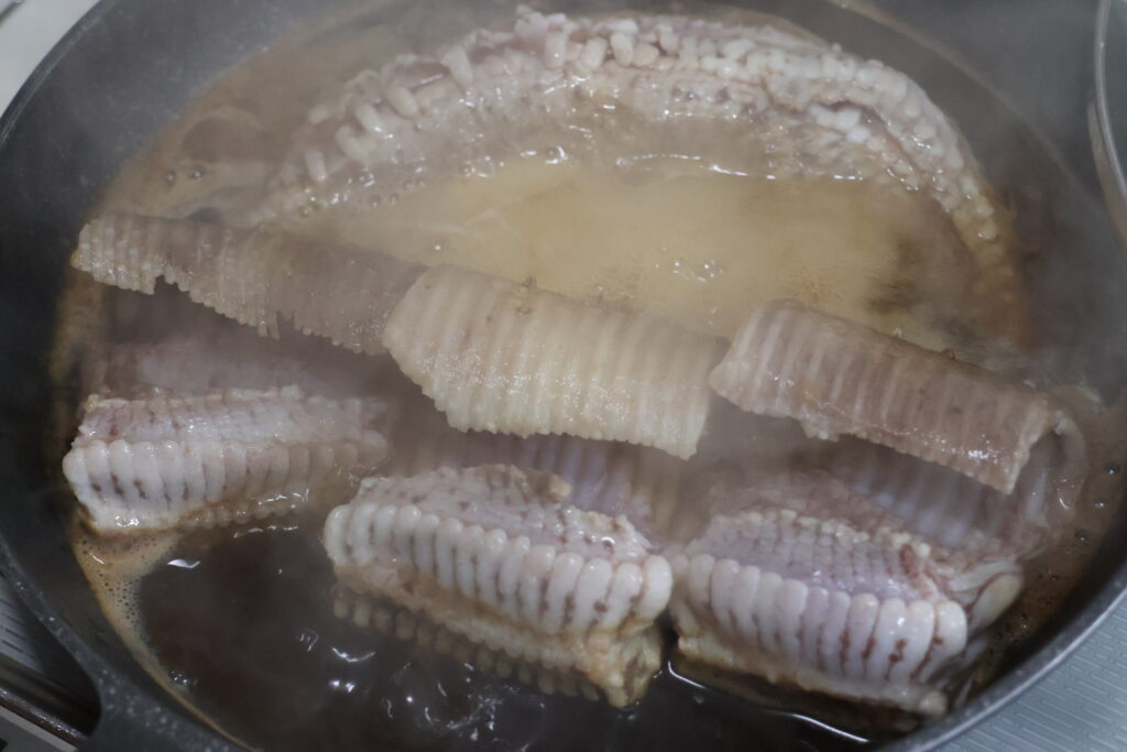 そして、煮汁を仕込んだ鍋に投入してみる。