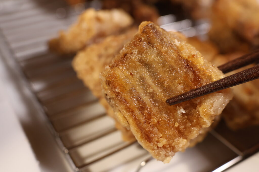 もしかしたら、一夜干しにして水分を少し飛ばしてから揚げるのもアリ?と思いました。