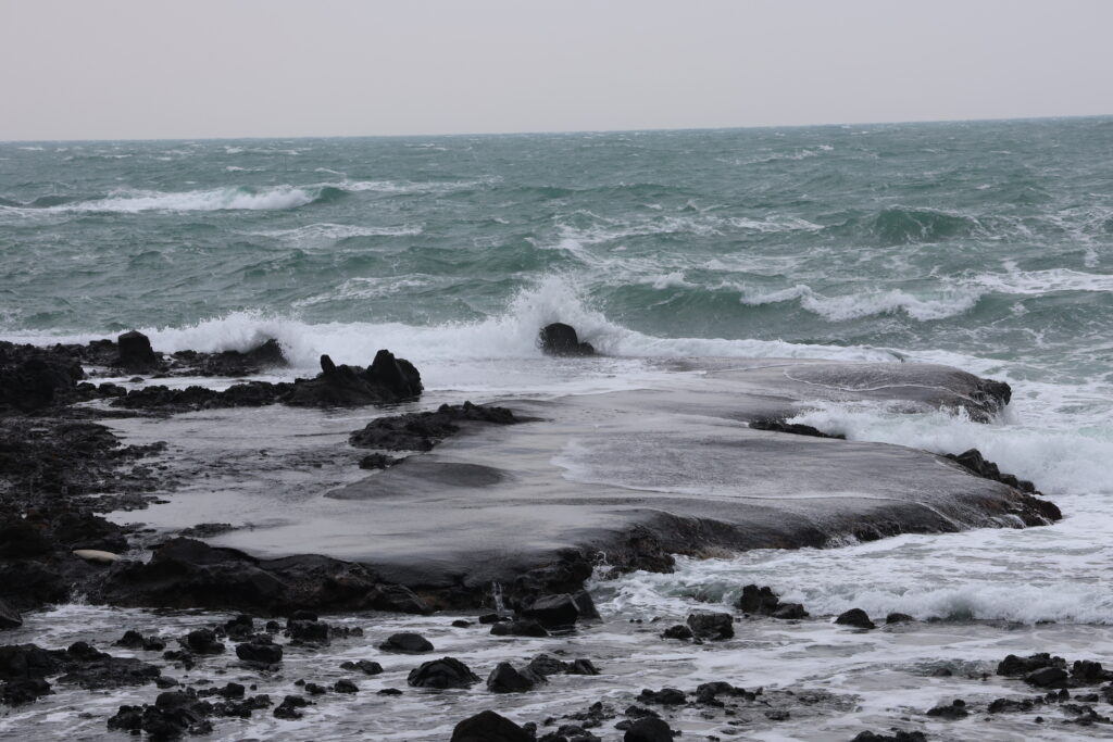 このエリアは外浦地区と呼ばれ、海岸線は日本海に面して荒々しい岩礁帯が続きます。