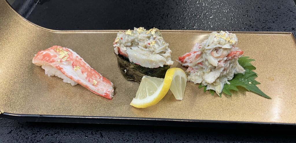 これまで金沢まいもん寿司では、冬の名物にしていた「香箱ガニ」のメニューはあったものの、石川県産のズワイガニの雄である「加能ガニ」を出すのはこれが初の試みだそうです。