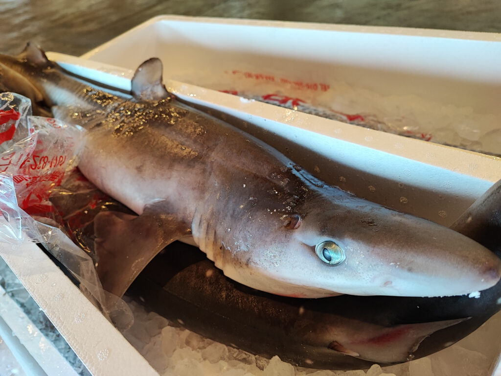 かなざわ総合市場では能登町からの入荷が主です。とりわけ特別な種類のサメではないですが、県内産だと毎日入荷があるわけではないので、入手しようと思ったらなかなか大変かもしれません。本気で手に入れようと思えば、馴染みの魚屋さんに聞いてみてください。