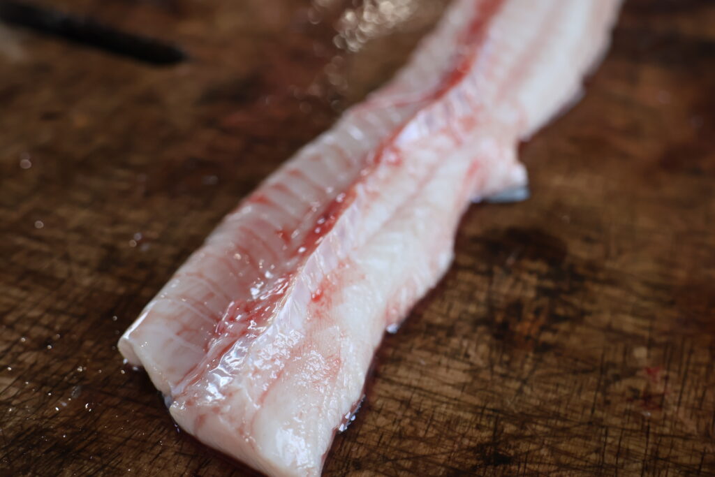 こちらが片身。歩留まり(可食部重量/全体重量)で考えると少し割合は低めかもしれません。